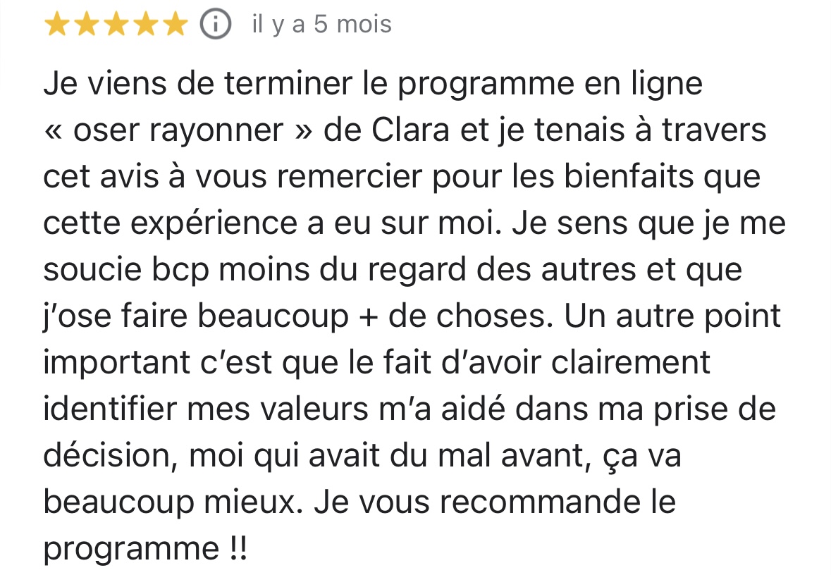 C’est ce que j’ai envie de transmettre dans mon accompagnement. Dans ce programme, vous apprendrez à valoriser votre lumière, mais également à accepter vos parts d’ombre.